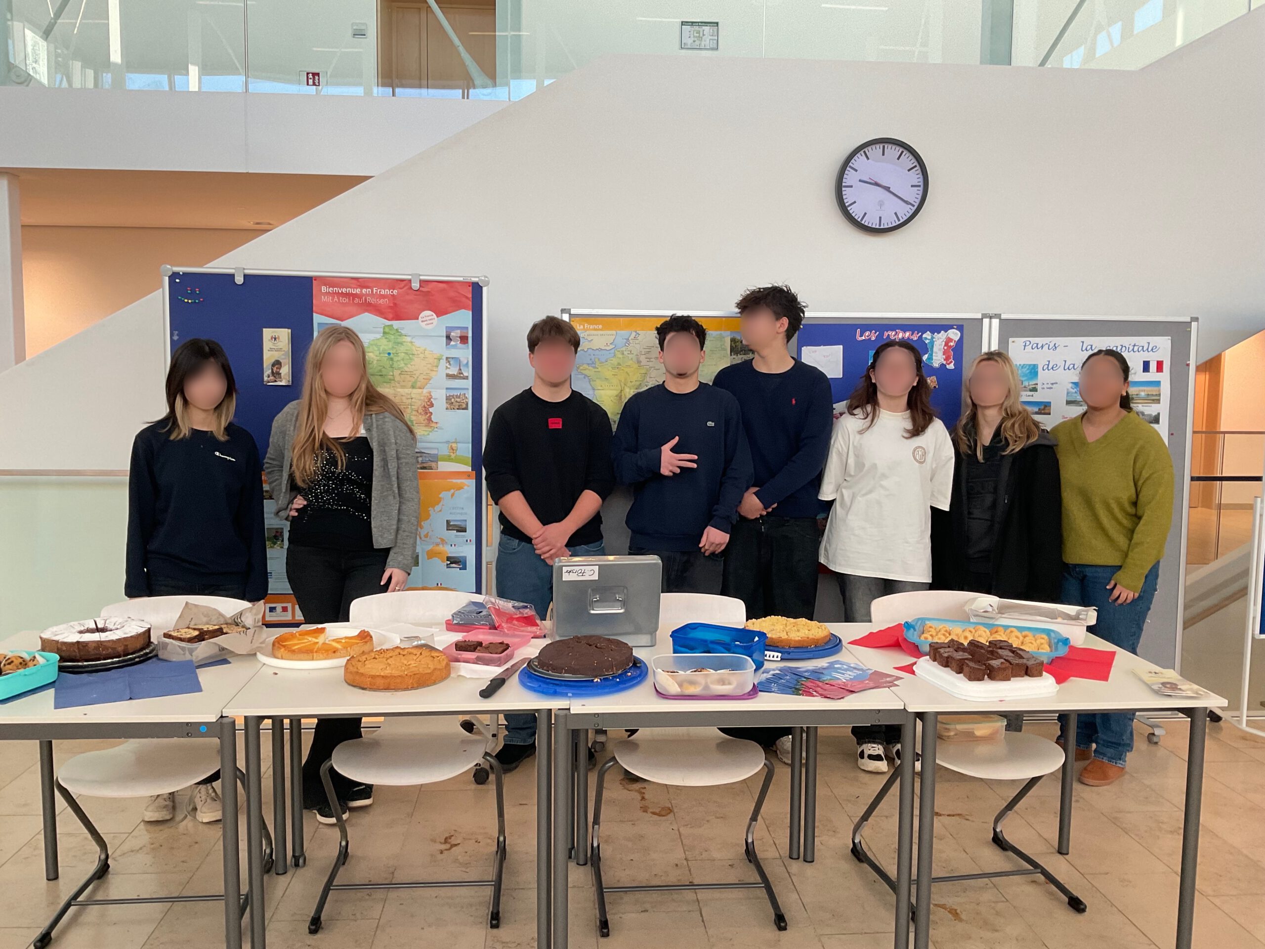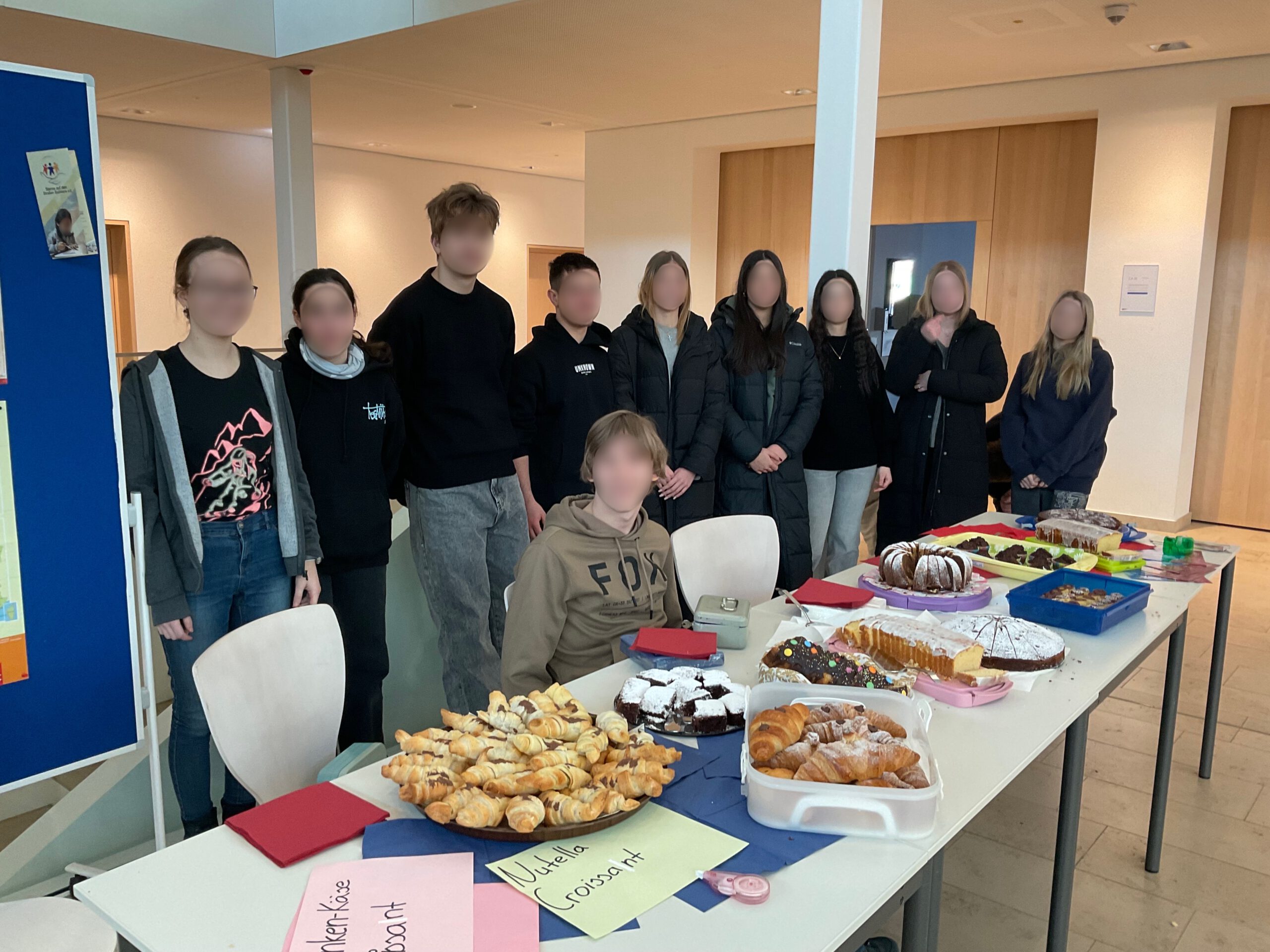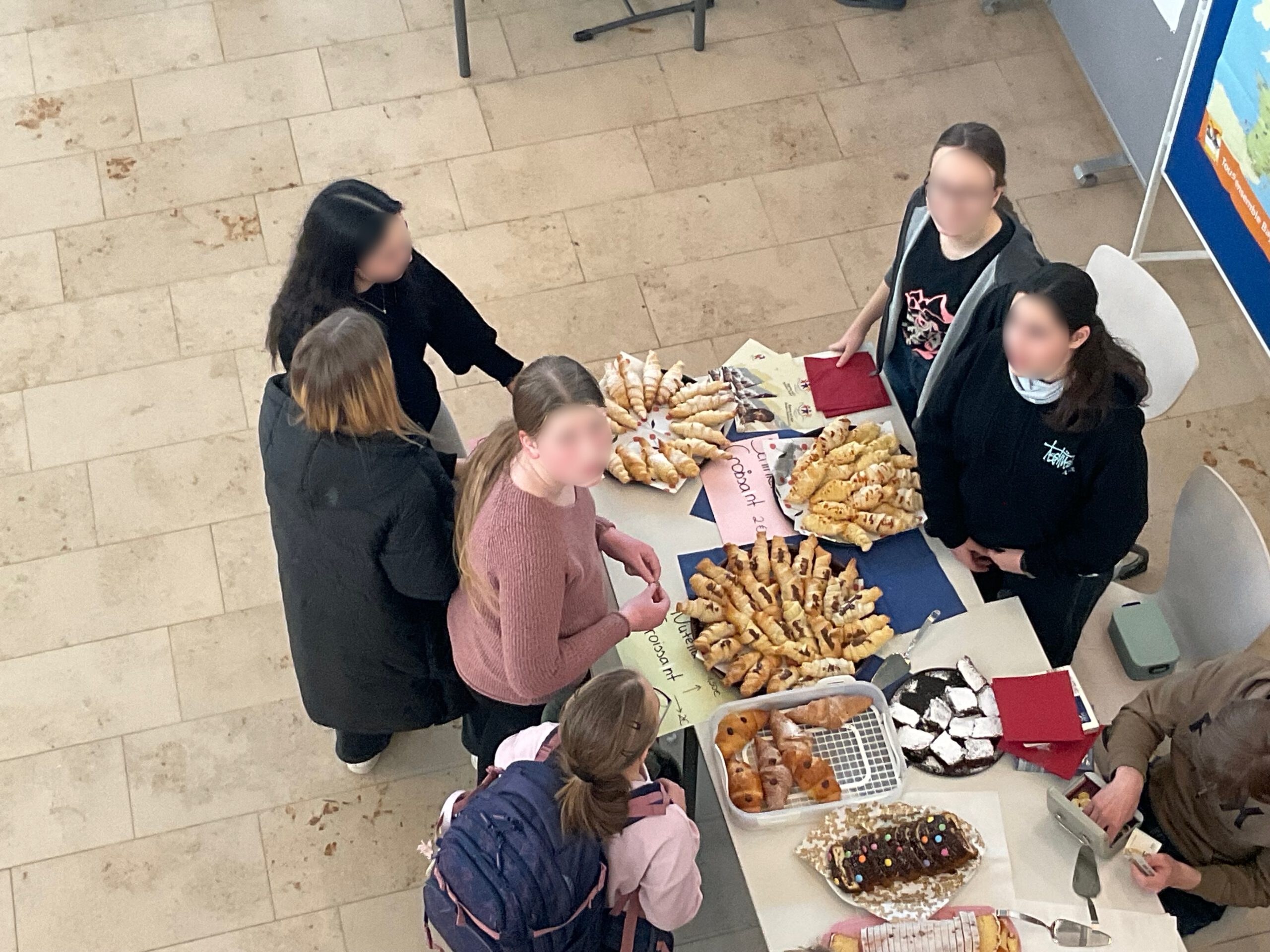 „Ah, heut ist wieder der Deutsch-Französische Tag!“ hört man etliche Stimmen im Schulhaus. Es hat sich mittlerweile schon an unserer Schule herumgesprochen, dass es im Januar so einen schönen Tag mit frischen, noch ganz warmen Croissants – Schoko oder Schinken/Käse – aus der Schulküche und leckeren Kuchen nach französischem Rezept gibt.