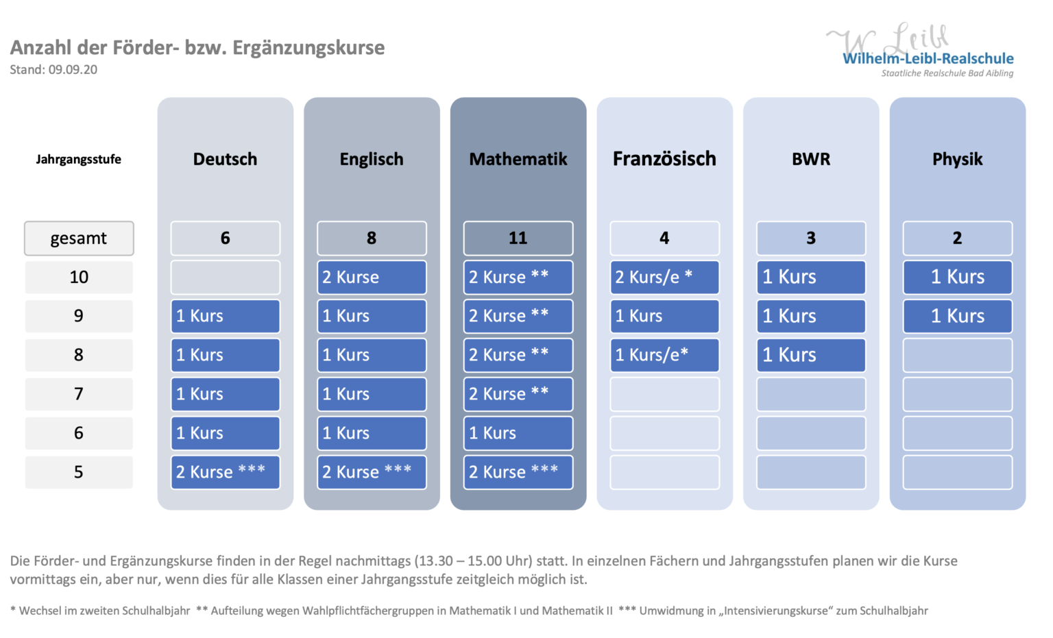 Uhrzeit, Raum und Lehrkraft des Förderkurs teilt Ihnen die Schule mit.
