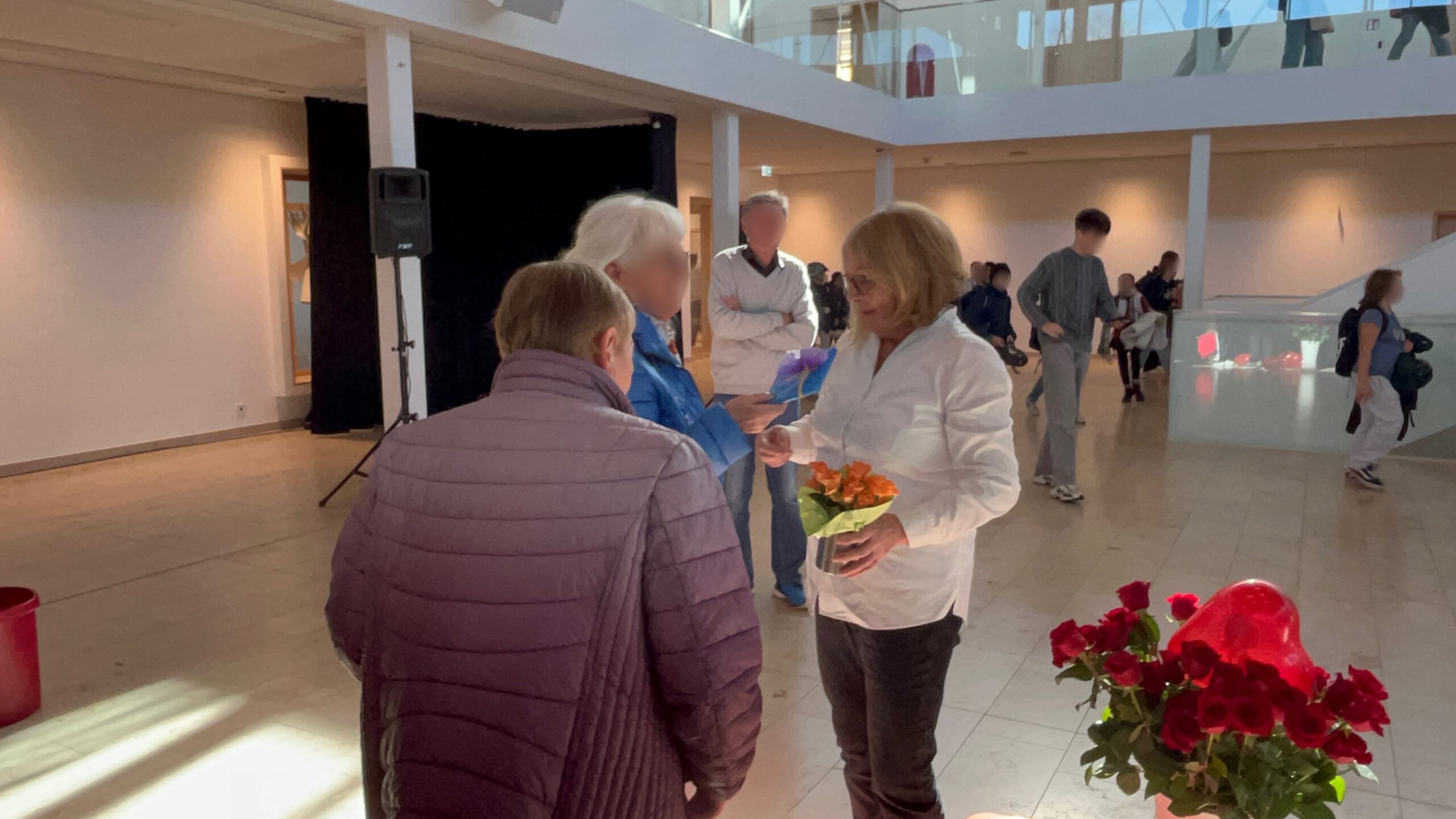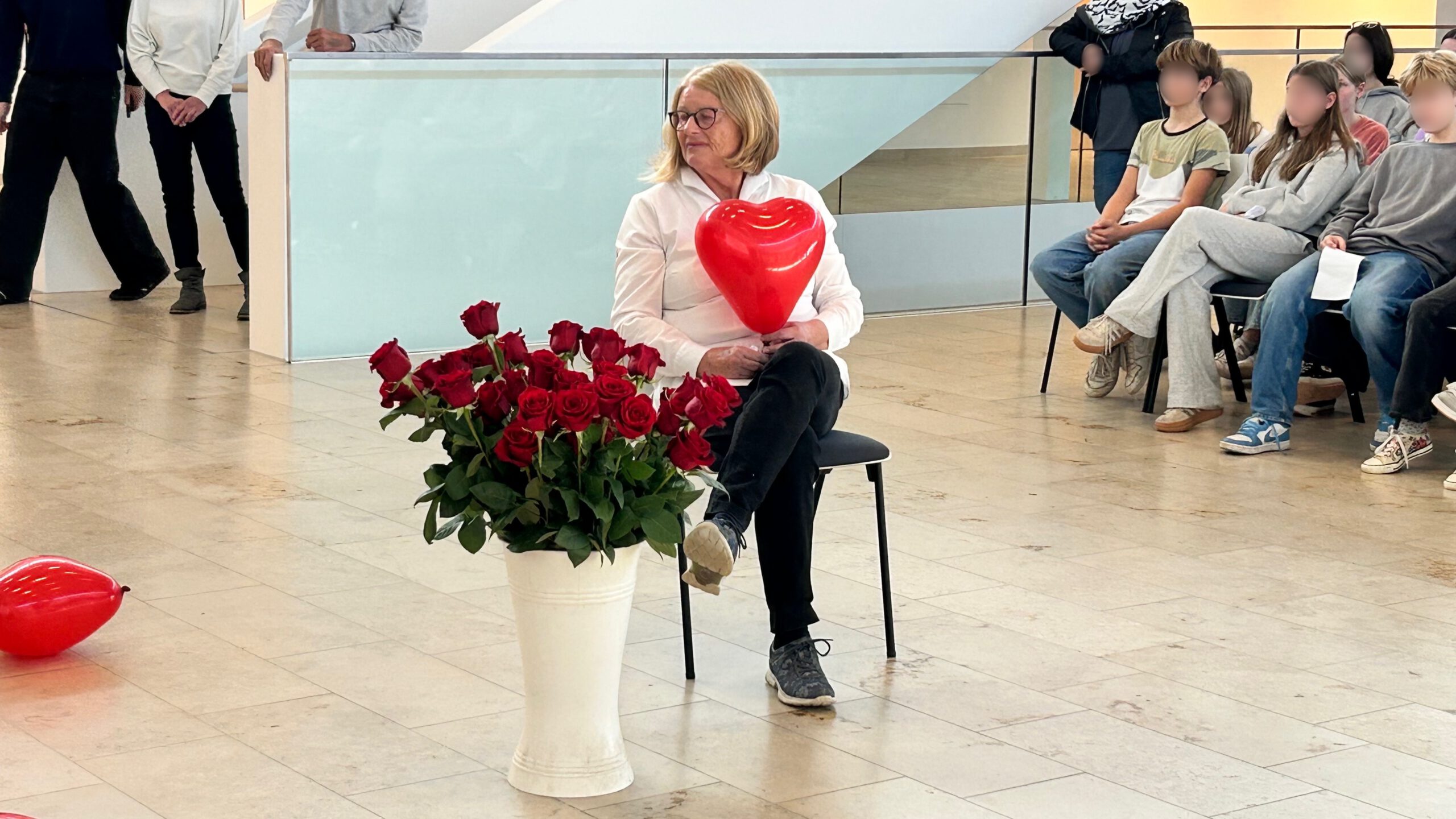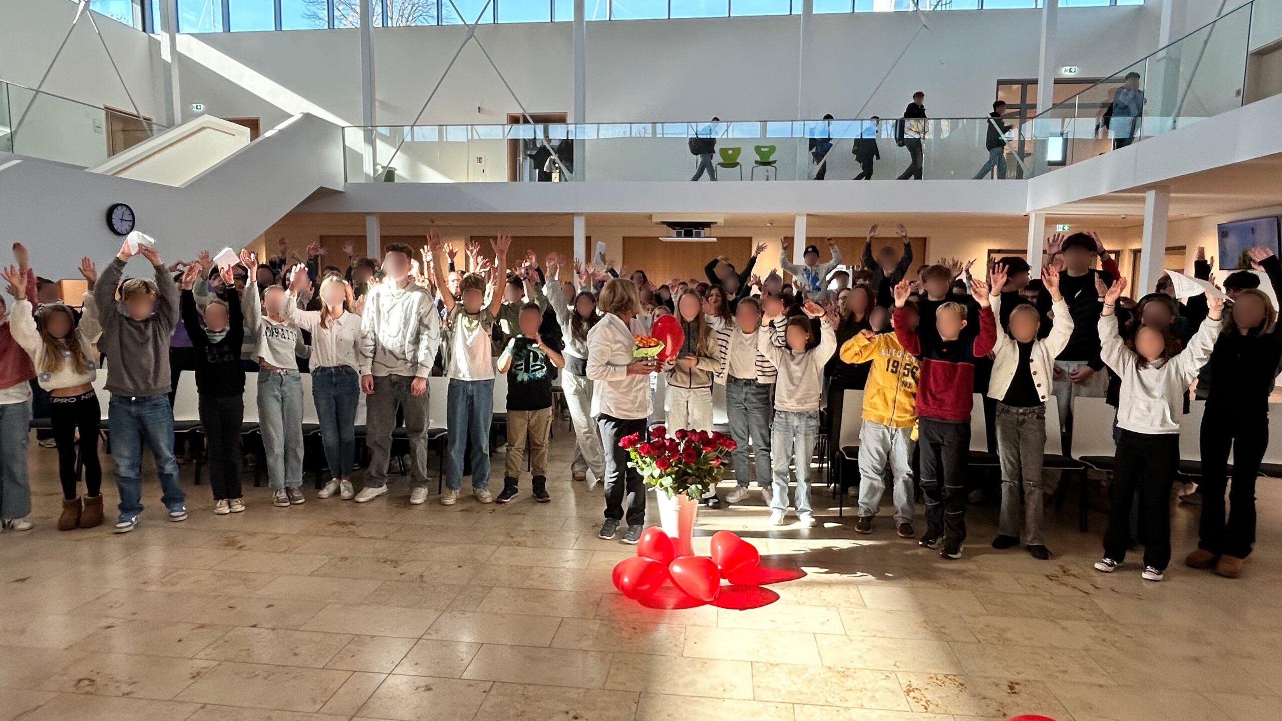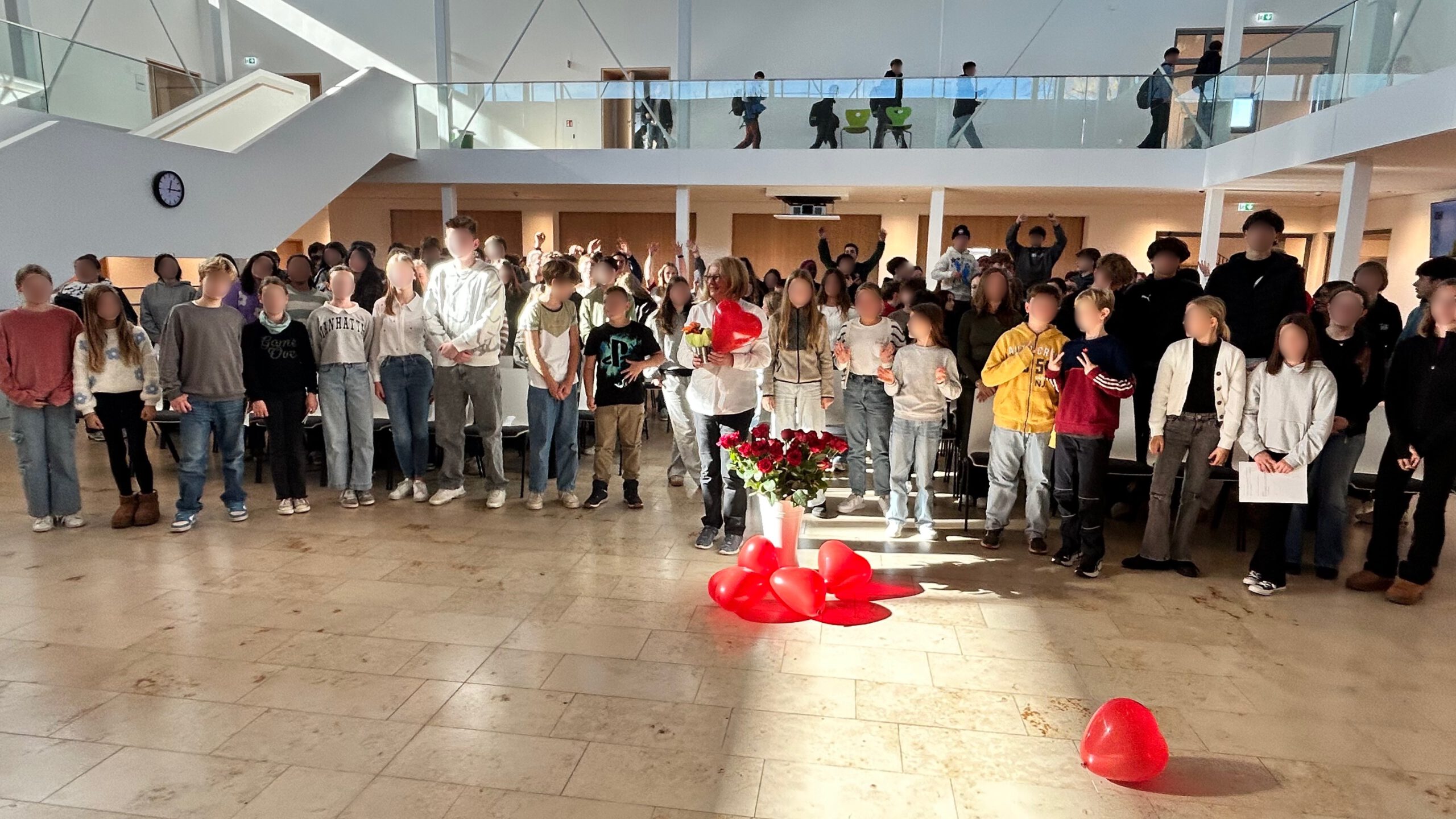 Im Rahmen einer stimmungsvollen Feier in der Aula würdigten Schulleiter Herr Wabner, die Elternbeiratsvorsitzende Frau Behnke, das gesamte Kollegium, die Schülersprecherinnen und Schülersprecher sowie alle Klassensprecherinnen und Klassensprecher das langjährige Wirken der beliebten Sekretärin. In sehr persönlichen Worten erinnerten die Schülervertreter an zahllose Momente des Schulalltags – von Pflastern, verlorenen Geldbeuteln und tröstenden Worten bis hin zu verlässlicher Hilfe in jeder kleinen und großen Notlage.