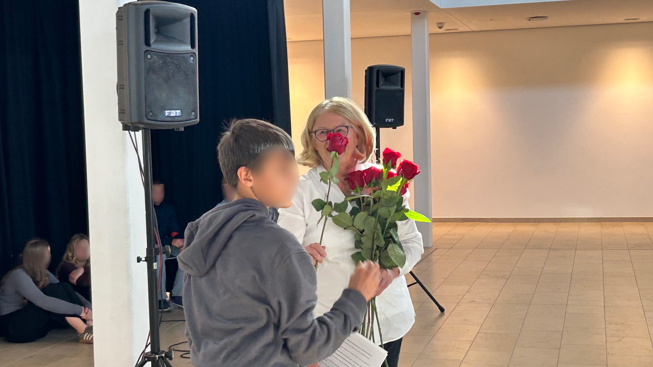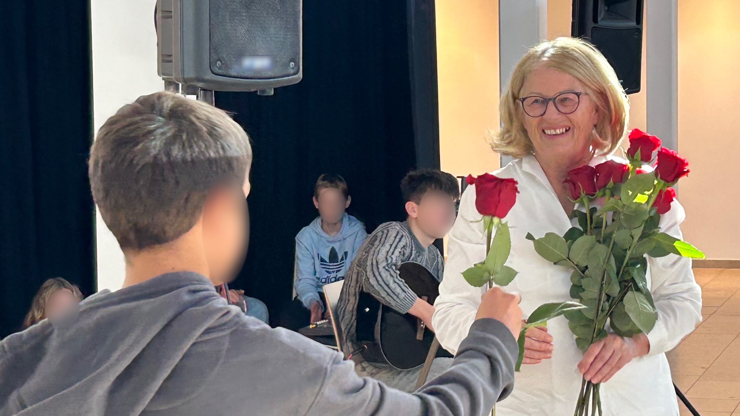 Als symbolisches Dankeschön überreichten die Klassensprecherinnen und Klassensprecher Frau Elbel einen großen Strauß roter Rosen. Auch die Schulband sorgte für eine feierliche musikalische Umrahmung. Die Elternbeiratsvorsitzende schloss sich den Dankesworten an und betonte die stets freundliche und verantwortungsbewusste Zusammenarbeit im Sinne der Schülerinnen und Schüler. Schulleiter Wabner hob in seiner Rede hervor: „Frau Elbel war über all die Jahre eine feste Größe in unserer Schulfamilie – verlässlich, humorvoll und stets mit einem offenen Ohr für alle. Sie hat diese Schule geprägt wie nur wenige.“