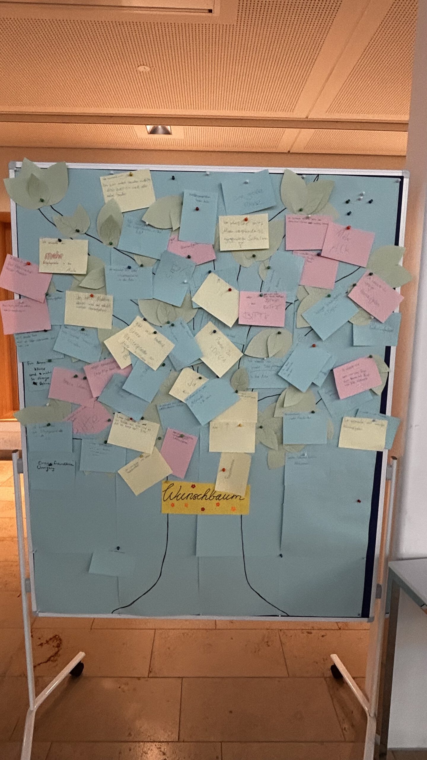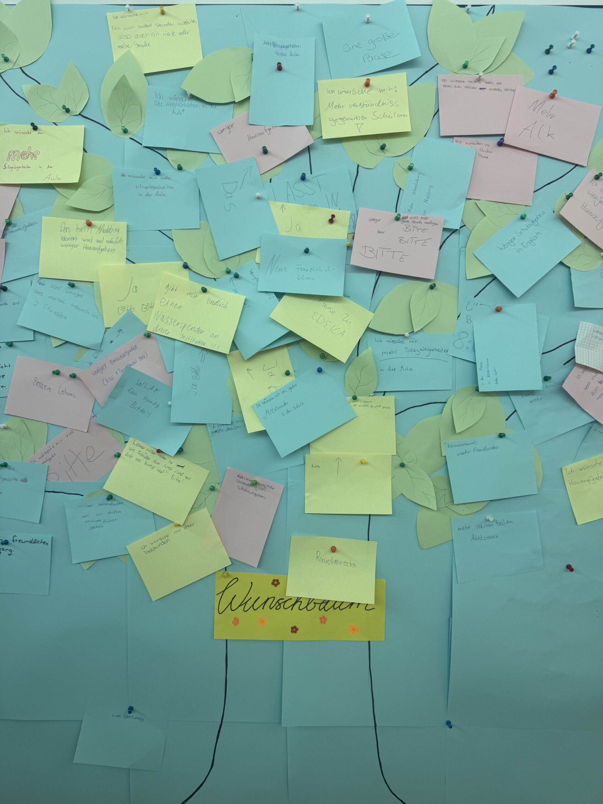 Am Donnerstag ging es um Hilfsbereitschaft. Ein von der Kunstklasse liebevoll gestalteter Wunschbaum wurde in der Aula aufgestellt. Die Schülerinnen und Schüler hatten die Gelegenheit, auf Zetteln zu notieren, in welchen Situationen sie sich mehr Unterstützung wünschen – beispielsweise bei Konflikten.